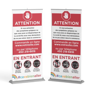 Bannière rétractable idéal pour affichage temporaire ou permanent. Sac de transport inclus. Prévoir 3 à 5 jours ouvrables pour la livraison. Pour une création personnalisée, veuillez remplir la demande de soumission en ligne ou nous envoyez un courriel à info@sidprint.com. -