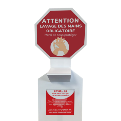 Station de désinfection de table format 24 »x 32 » Prévoir 3 à 5 jours ouvrables pour la livraison. Pour une création personnalisée, veuillez remplir la demande de soumission en ligne ou nous envoyez un courriel à info@sidprint.com -